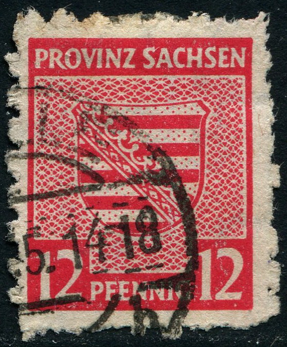 Der erste Beleg ist ein Geschäftsbrief von Magdeburg vermutlich nach Leipzig. Nahezu alle Briefe meines Fundes gingen nach Leipzig. Da es sich aber um einen Fensterbriefumschlag handelt, kann das nicht geklärt werden. Der Beleg ist mit einer Mi 71 frankiert. Der Abschlag erfolgte am 15.11.1945. Die Marke weist m.E. den Plattenfehler 71II auf. Da ich aber keinen Vergleich gefunden habe, hoffe ich, dass ein Experte aus dem Forum dazu erhellende Informationen beitragen kann. Gemäß meinem Michel spezial 2008 wird dieser Plattenfehler, gestempelt, mit 450,00 € bewertet, für die Bewertung eines Beleges mit dieser Marke schweigt er sich aber aus.