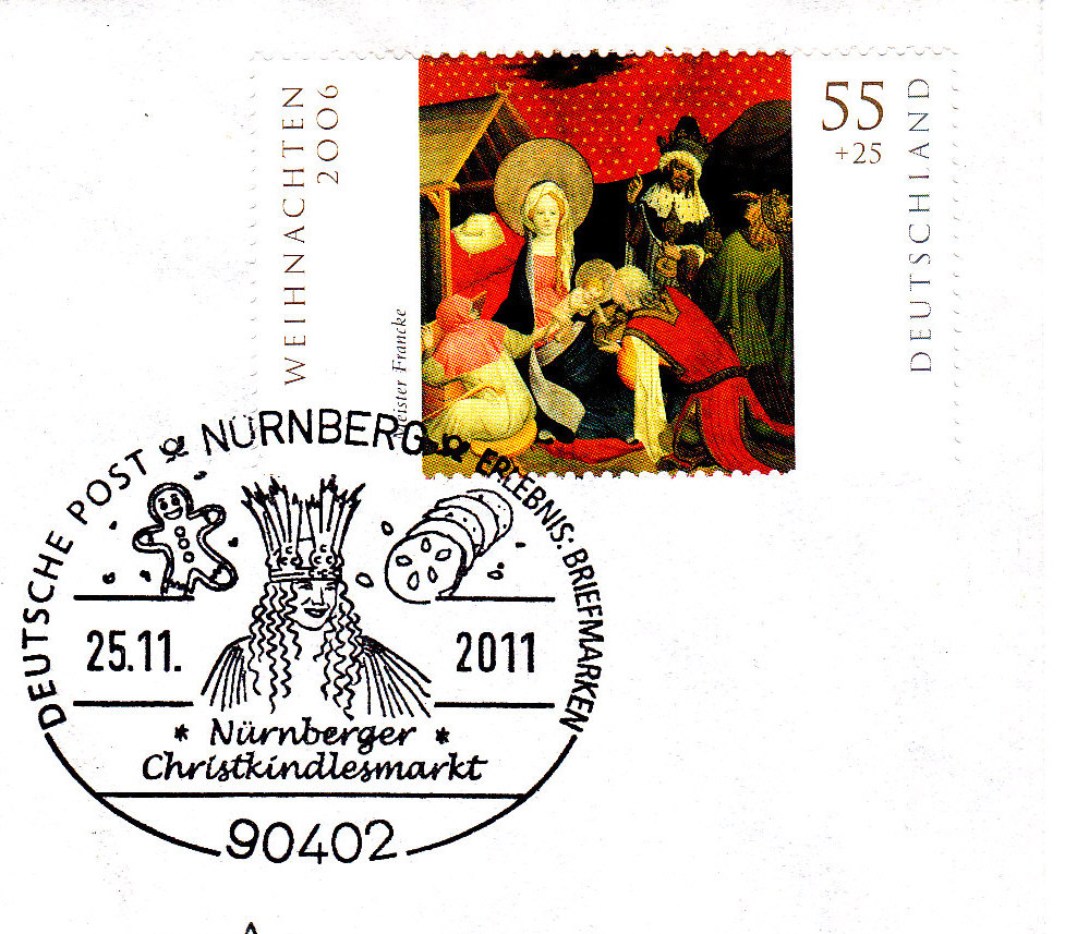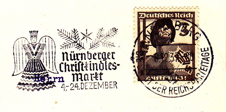 für den Christkindlesmarkt selbst gab es 1937 den ersten Werbestempel und ab 1950 jedes Jahr den Sonderstempel.