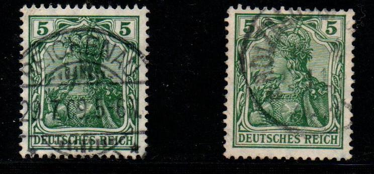 heute komme ich zur 5 Pf. Germania Marke mit Wasserzeichen, Friedensdruck.