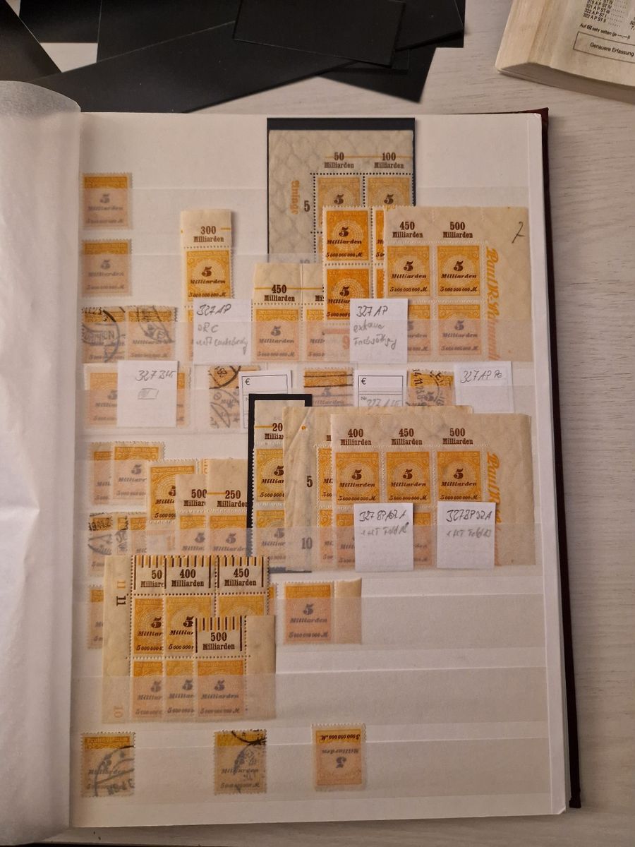 Anbei mal ein paar Bilder der Sammlung. Sieht sehr unübersichtlich aus, aber mehr Platz habe ich in dem Album nicht mehr und die Inflasammlung wurde erst neu in 3 dicken Alben untergebracht, neu umstecken mag ich die nicht. Ich denke, dass es da Zeit für Blankblätter mit Klemmtaschen wird. Material ist genug da.