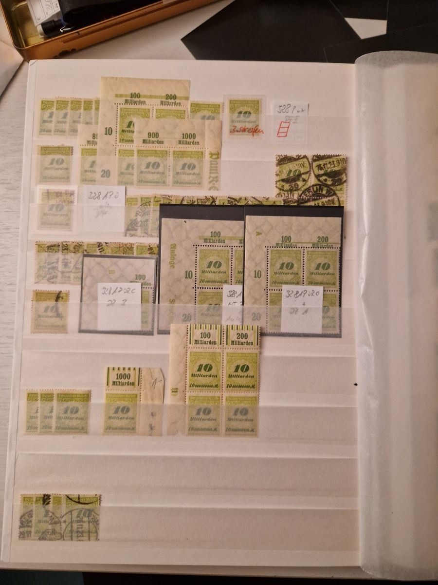 meine Freundin hat mir als Entschuldigung eine Sammlung bei ebay ersteigert. Es war eine richtige Spezialsammlung der Marken DR.Mi313-330, also das Korbdeckelmuster. Einige bessere Stücke hatte ich schon, aber hier kam der Rest. 20 Druckerzeichen, alle Arten der Oberränder bei den Hauptnummer, HAN, Zähnung, HT und HT-Korrekturen alles war dabei.