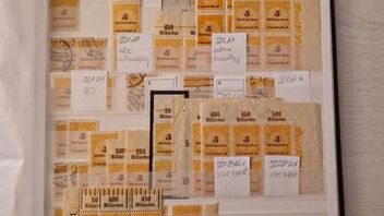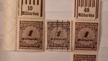 Anbei mal ein paar Bilder der Sammlung. Sieht sehr unübersichtlich aus, aber mehr Platz habe ich in dem Album nicht mehr und die Inflasammlung wurde erst neu in 3 dicken Alben untergebracht, neu umstecken mag ich die nicht. Ich denke, dass es da Zeit für Blankblätter mit Klemmtaschen wird. Material ist genug da.