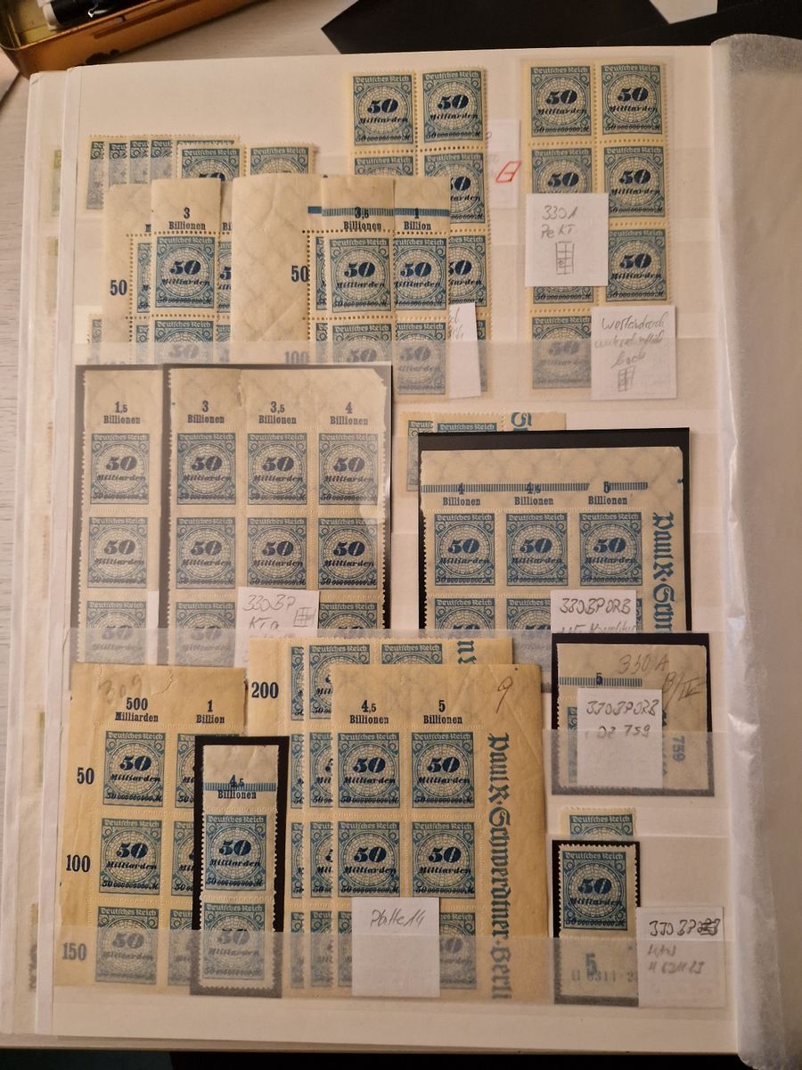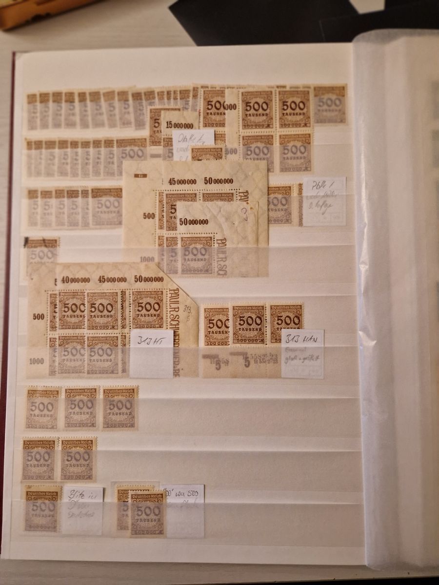 Anbei mal ein paar Bilder der Sammlung. Sieht sehr unübersichtlich aus, aber mehr Platz habe ich in dem Album nicht mehr und die Inflasammlung wurde erst neu in 3 dicken Alben untergebracht, neu umstecken mag ich die nicht. Ich denke, dass es da Zeit für Blankblätter mit Klemmtaschen wird. Material ist genug da.