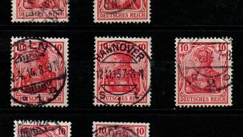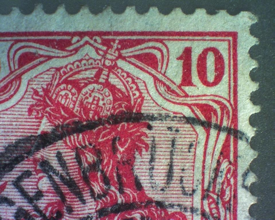 heute beginne ich mit der 10 Pf. Germania mit Wasserzeichen, Friedensdruck. Das ist ein etwas umfangreicheres Thema, deshalb heute nur die Farben.