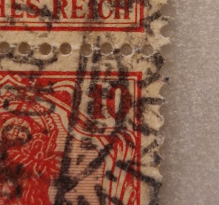 Bei meinem Type I (Fuß der rechten "1"berührt die Rahmenlinie) handelt es sich um einen Farbpunkt, der mit der Rahmenlinie verbunden ist. Da fehlt die linke Fußsohle der "1" .
