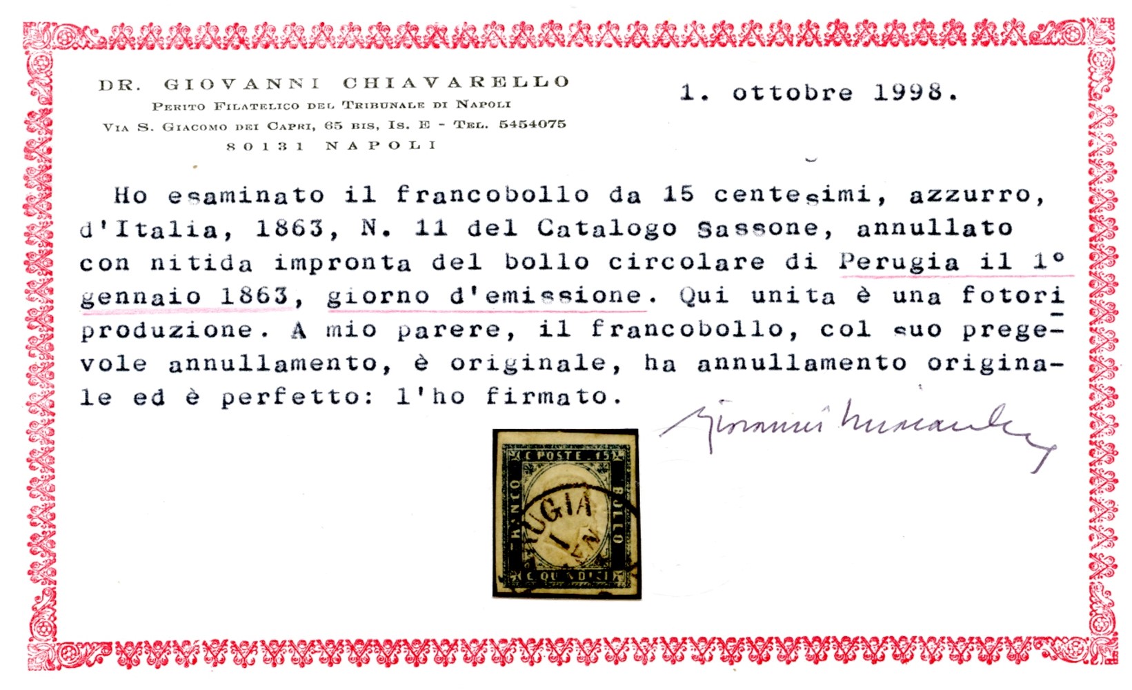 Noch das Attest zum Ersttag, damit kein Missverständnis bezüglich Echtheit besteht. (Mi. Nr. 14 - Sassone Nr. 41a)