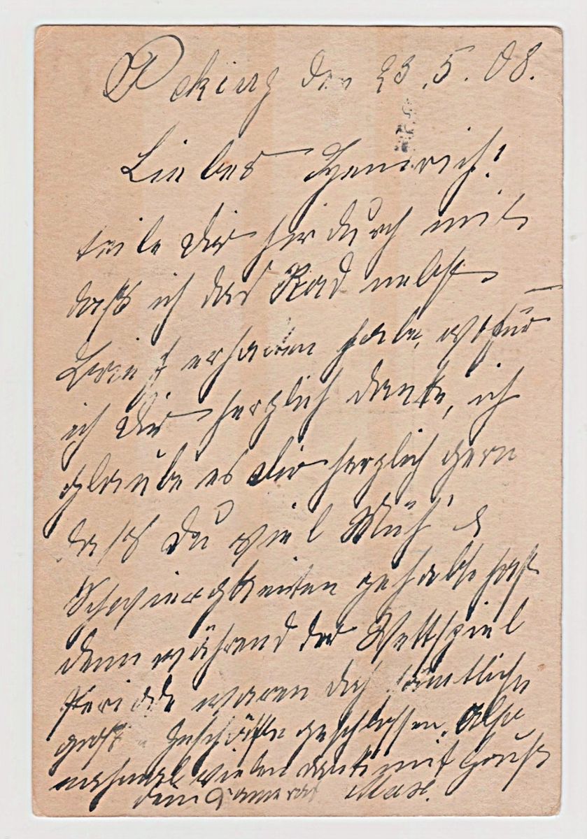 Gestempelt jedenfalls mit "Peking  - Datum halte ich allerdings für 28.5.1908