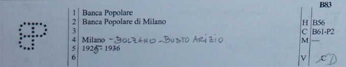 Bank stimmt allerdings schon mal - es ist die "Banca Popolare", die Buchstaben sind dabei so angeordnet: