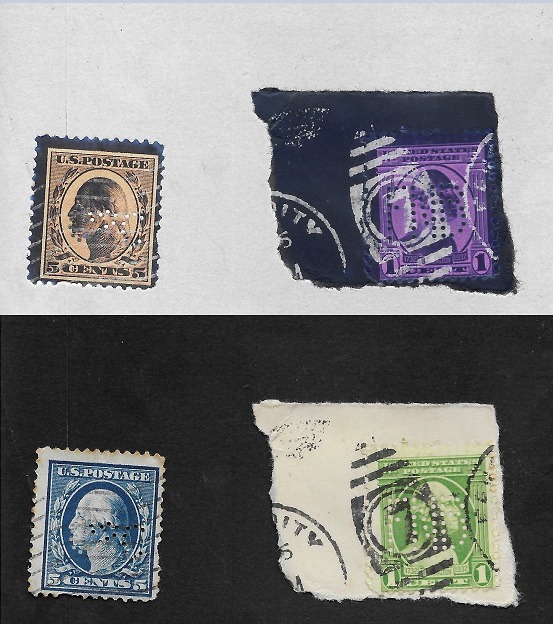 Hier zwei nicht sehr schöne Exemplare mit US-Perfins die tomm2015 aber klar definiert hat :