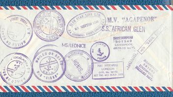 ist hier richtige Schiffpost abgebildet oder jemand einfach mit verschiedene Stempel gespielt hat ? werde dankbar für jede Info.
