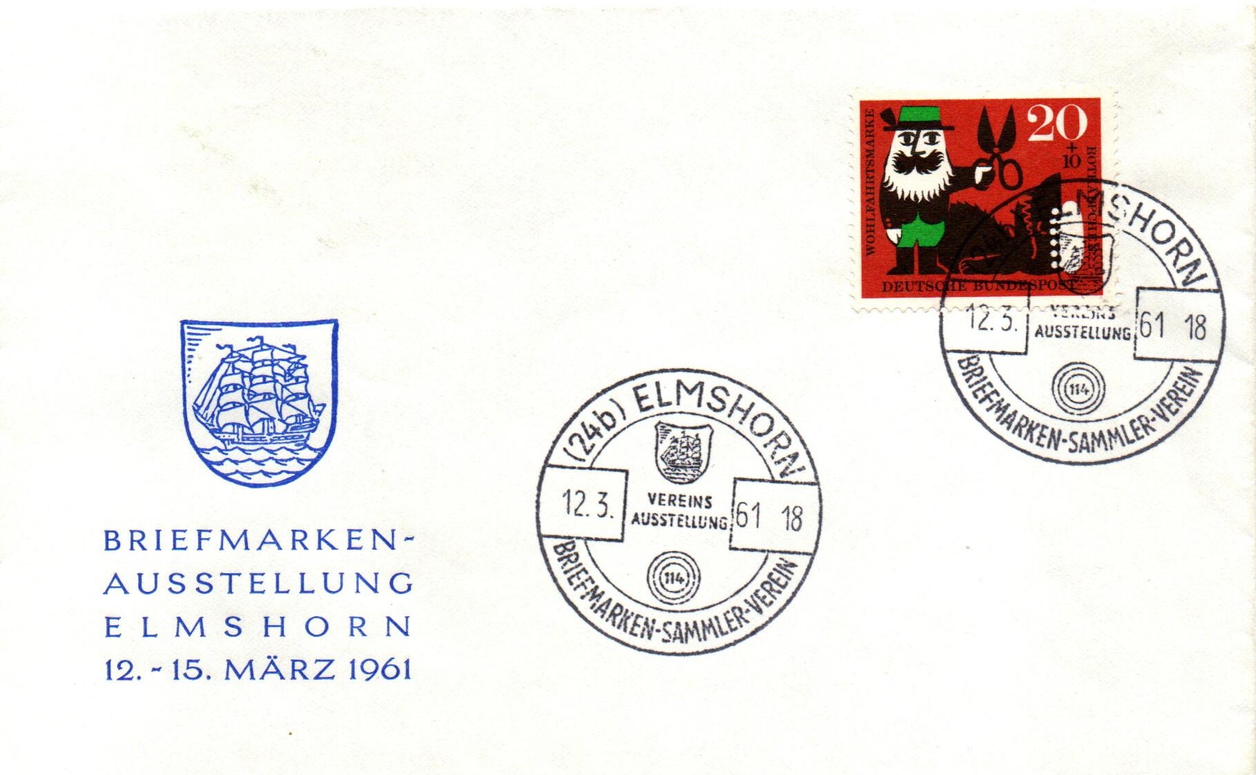 Heute ein undressierter Sammlerbeleg aus dem Jahr 1961 mit Werbestempel anlässlich einer Vereinsausstellung des Briefmarken-Sammler-Vereins Elmshorn.