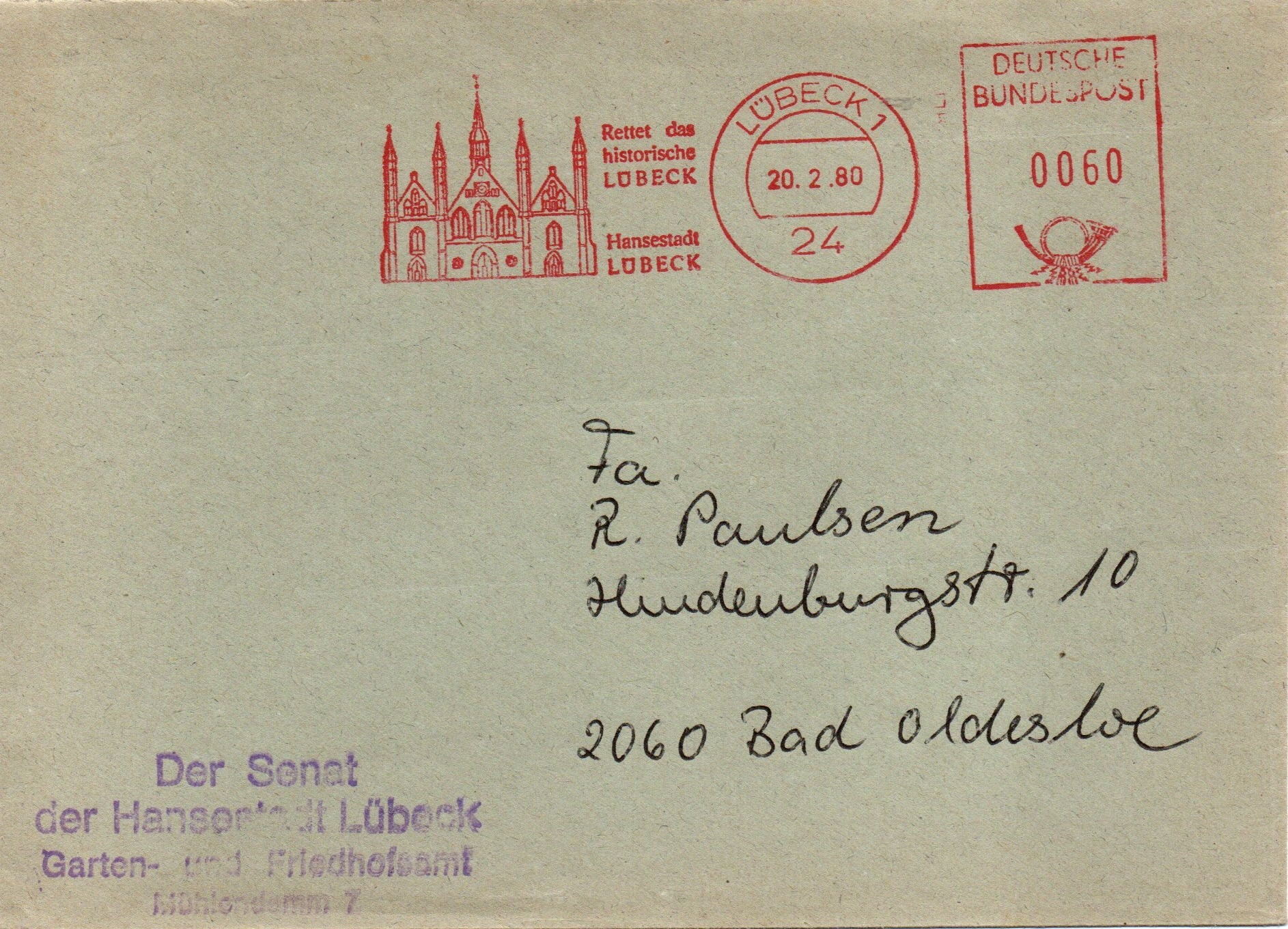 auch Freistempel gibt es mit ortsbezogener Werbung. Na ja, bei einem Brief des Lübecker Senats auch kein Wunder.