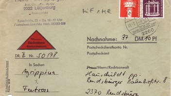 Christoph 1 hatte im Beitrag #66 auf Seite 4 schon einige Maschinenwerbestempel aus Niebüll gezeigt. Ich füge heute einen leider wie so häufig gelochten Nachnahmebeleg aus Niebüll nach Rendsburg aus dem Jahr 1978 hinzu.