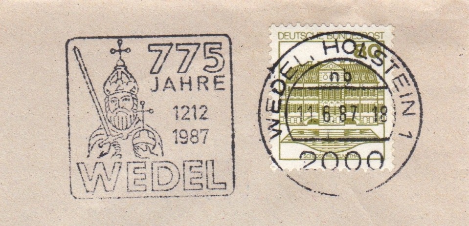 Werbestempel: 775 Jahre 1212-1987 Wedel