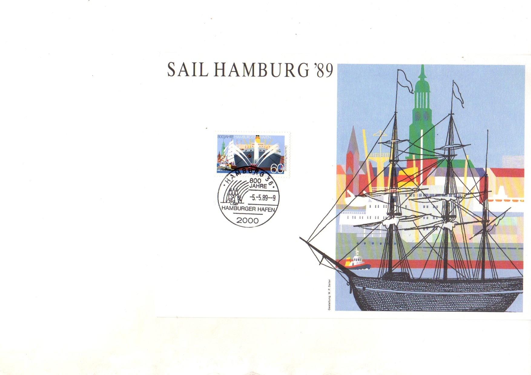 auf Vorlagekarton SAIL Hamburg '89 des Sammler-Service