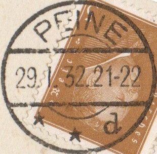 Interessant nebenbei noch die immer wieder heftig diskutierte Verfügung des Reichspostministeriums vom April 1938. Hier wurde dazu aufgefordert alle Stempel bis zum 3. Juni 1938 einzusenden um die Sterne zu aptieren. Da hat man sich in Peine nicht so ganz dran gehalten.