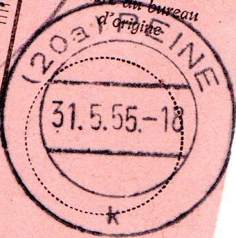 Der UB ist hier "d" und auch dieser Stempel wurde nicht im normalen Postalltag eingesetzt. Alle Abschläge sind auf Paketkarten zu finden. Mir liegen nur 10 verschiedene Abschläge dieses Typen vor. Der mir bekannte Einsatzzeitraum ist April 1954 bis April 1962.