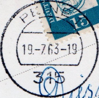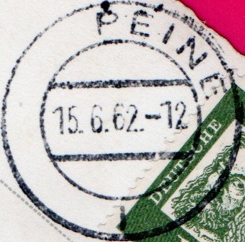 Den Anfang macht der 20a Peine mit UB "i" - die Urform war bis zum 5. Mai 1962 (einem Samstag) im Einsatz. Irgendwann kurz danach wurde das Stempelgerät eingezogen und die "20a" aus dem Stempel getilgt.