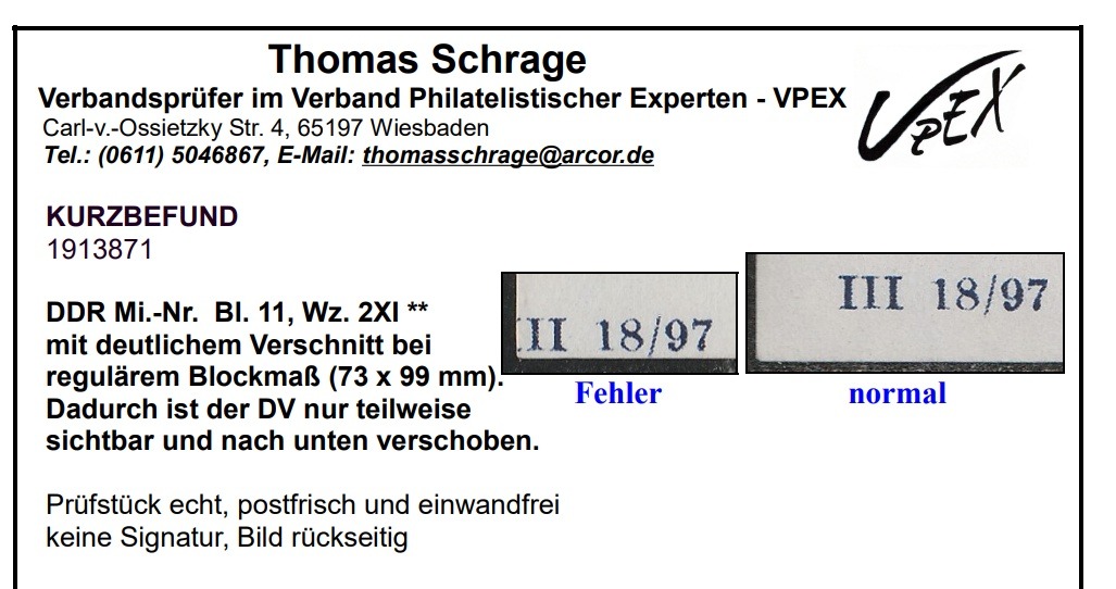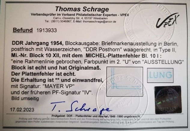 Es gibt sicher noch eine Reihe von signierten oder auch befundeten DDR Bl 10 PF IV (nur Punkt im ''U) , die zusätzlich diesen unbemerkten Linienbruch links unten enthalten.