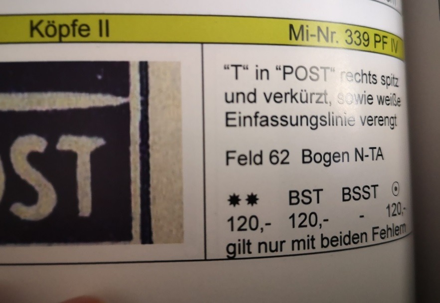 Mittlerweile nach unserer PF-Katalogisierung zählt diese Erscheinung auch im MICHEL-Spezial als der wesentlich seltenere PF I , den es einmal mit zwei und einmal mir nur einer gebrochenen Linie gibt.