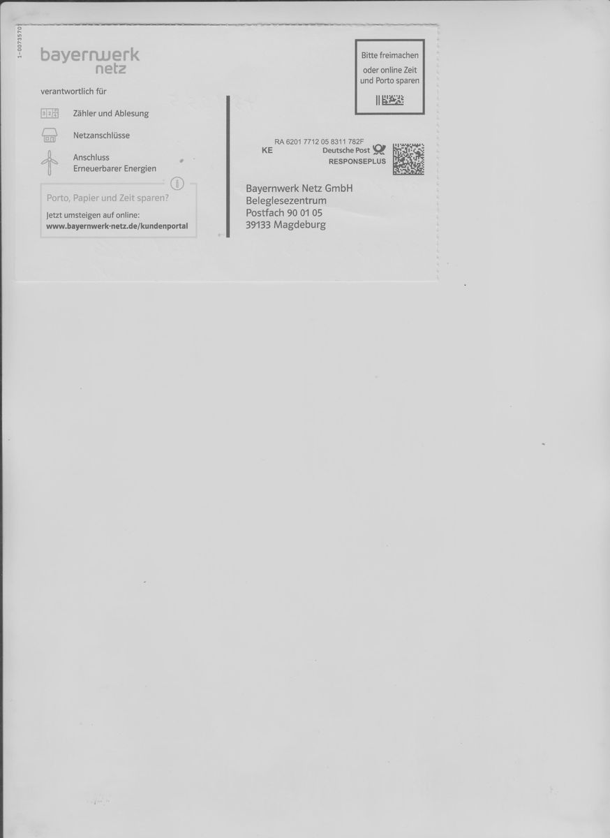 Heute wollte ich meinen Stromzählerstand auf einer Antwortkarte dem Bayernwerk mitteilen, auf der Karte stand: Deutsche Post RESPONSEPLUS, und oben rechts: Bitte freimachen oder online Zeit und Porto sparen. Da ich mit diesem Begriff nichts anfangen konnte, gleich mal im Netz nachgeschaut, Ergebnis: