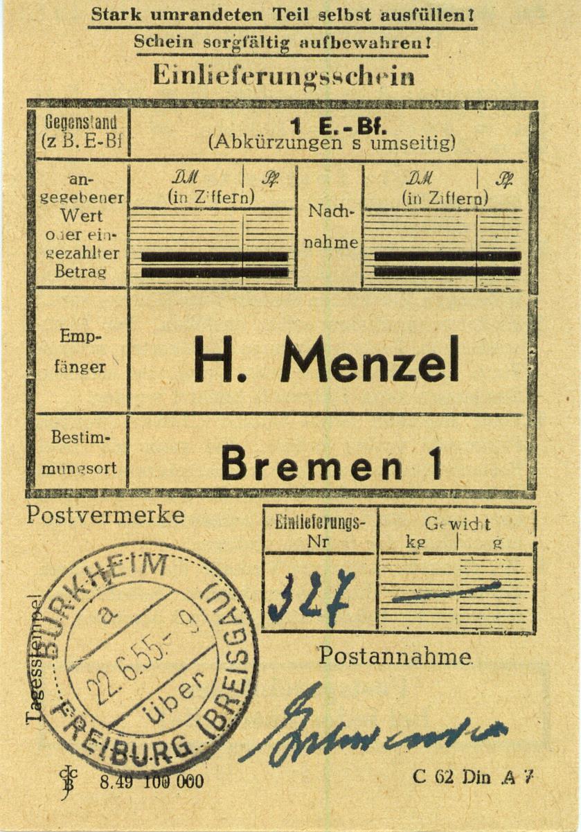 und schließlich auf einem Einlieferscheim vom 22.06.1955 (den dazugehörigen R-Brf habe ich auch, aber da ist der Stempelabschlag nicht so schön).