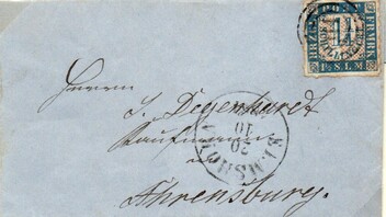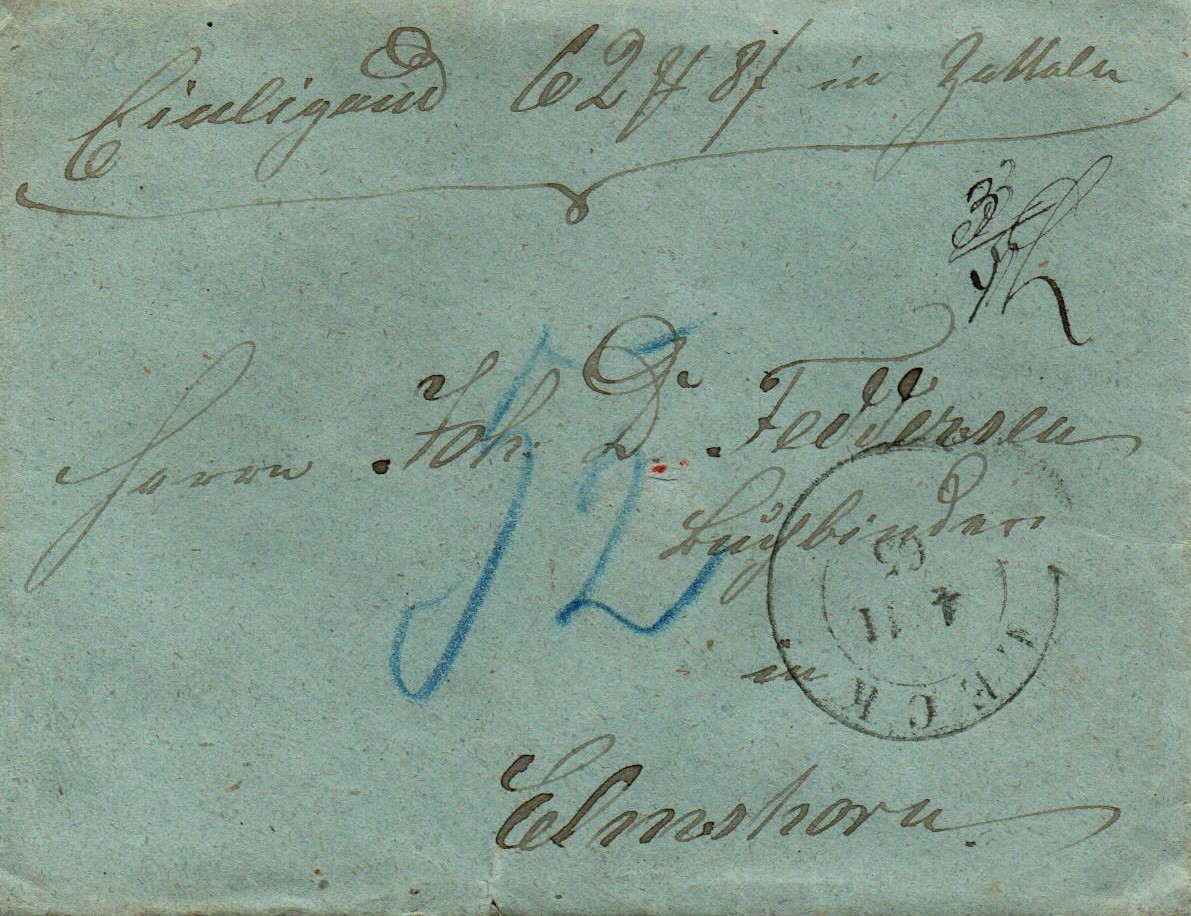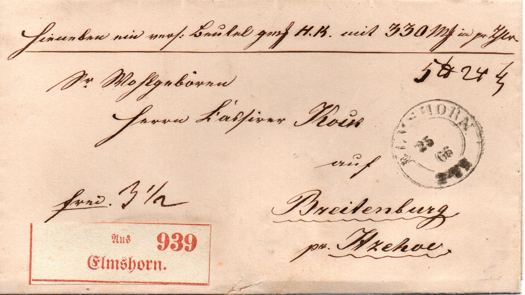 hier nun noch ein mit einer 4 Sk. Marke der Ausgabe 1863 (mit Durchstich) frankierter Brief aus Elmshorn ins eigentliche Königreich Dänemark, nach Nysted. Die Marke mit dem Nummernstempel 114 entwertet. der Kreisstempel "Elmshorn 19.9.1863" danebengesetzt.