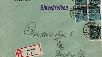 Es ist vielleicht schon dem einen oder anderen aufgefallen. Mir fehlen bislang aus der Zeit des Deutschen Reiches die sogenannten qualifizierten Postsendungen, also Einschreiben, Wertbriefe, Nachnahmen, Postanweisungen etc. Selbst Paketkarten aus Elmshorn habe ich bislang nicht auftreiben können.
