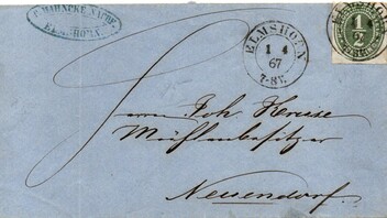 hier nun noch ein mit einer 4 Sk. Marke der Ausgabe 1863 (mit Durchstich) frankierter Brief aus Elmshorn ins eigentliche Königreich Dänemark, nach Nysted. Die Marke mit dem Nummernstempel 114 entwertet. der Kreisstempel "Elmshorn 19.9.1863" danebengesetzt.