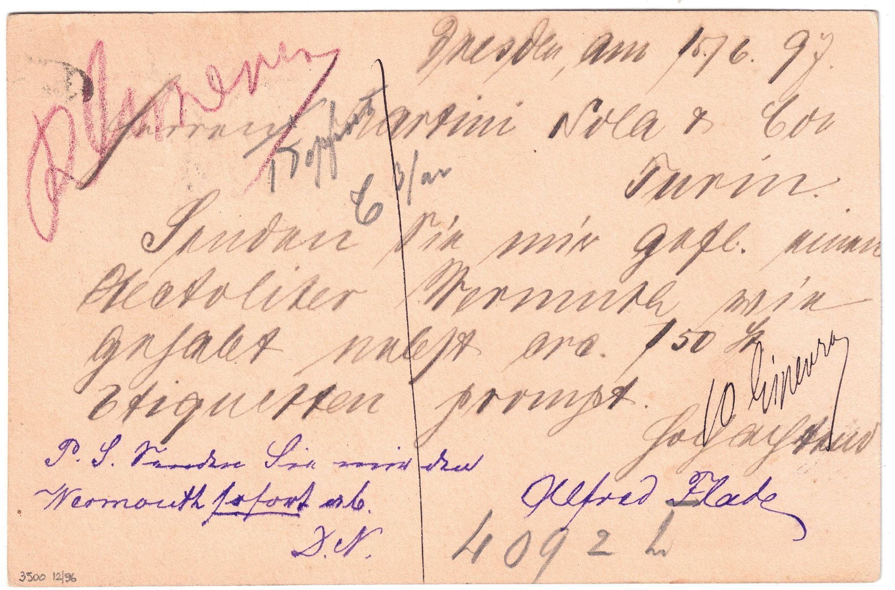 Postkarte 1897 nach Turin - was wollte der Absender prompt zugeschickt bekommen?