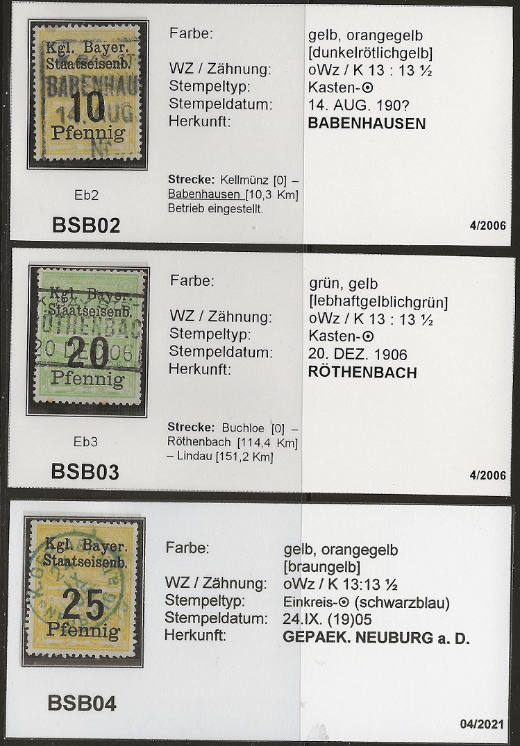 Schön gestempelte Eisenbahnmarken der Bayerischen Staatsbahn