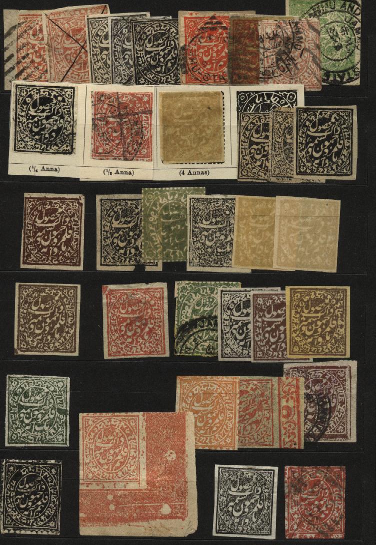 Kaschmirmarken sind überaus wasserempfindlich, da sie mit Ölfarben oder Wasserfarben gedruckt wurden.Da konnte ein unwissender Sammler mal eine Marke zum Ablösen in das Wasserbad legen, und dann bekam er ein fast reinen Papierfetzchen statt der Marke zum trocknen.