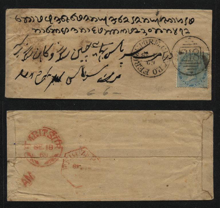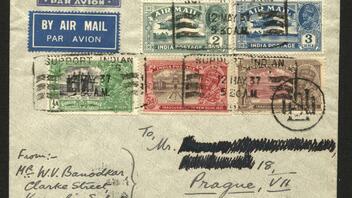 Ein jüngerer Brief mit vorderseitigen Durchgangsstempel Athen, auf der Rückseite über den indischen Stempel läuft noch ein Rollenstempel von Athen