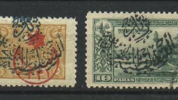 Persische Briefmarken mit Aufdruck als Gebühren Marken verwendet.