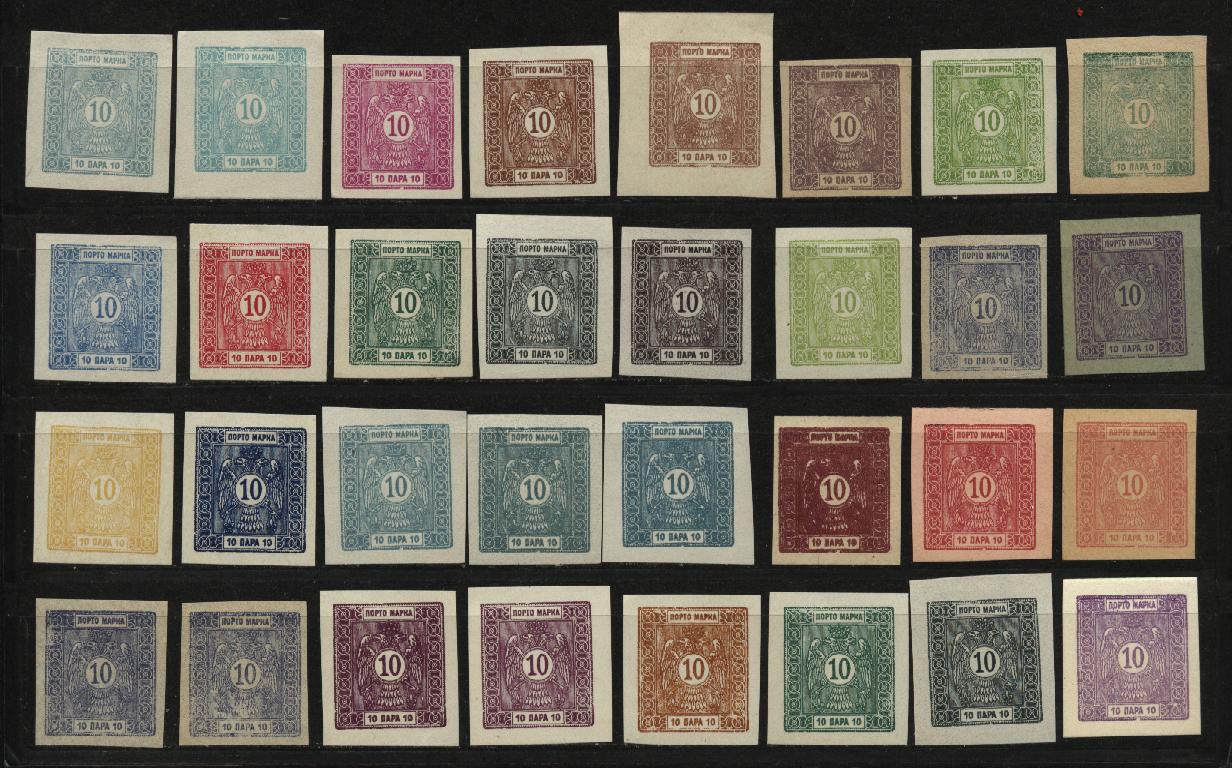 verschiedene Abklatsche - entstanden durch zu schnelles und gewichtiges Aufeinanderstapeln von gerade frisch gummierten und gedruckten Markenbögen in der Druckerei... -