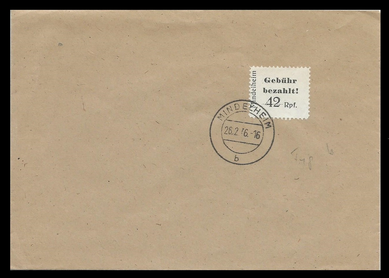 Mal etwas anderes, eine Blanko Briefhülle mit einer Marke von Mindelheim.
