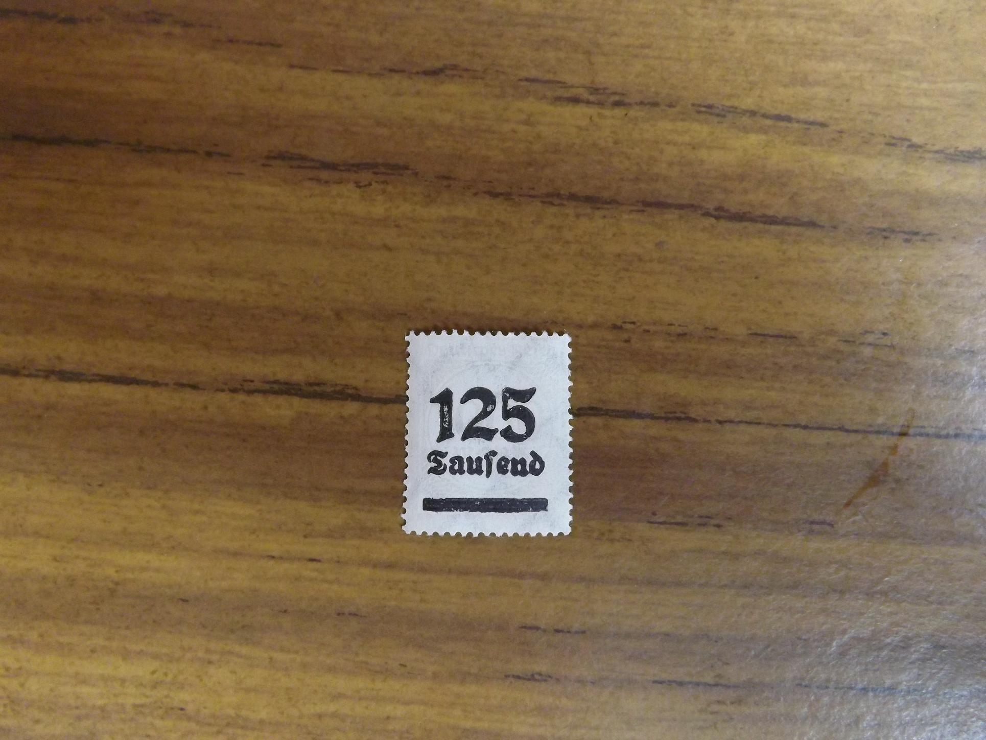 ich habe hier eine Marke , meines erachtens DR Infla. 291 bei der mit blosen Auge nur der Wertüberdruck 125 Tausend zu sehen ist.