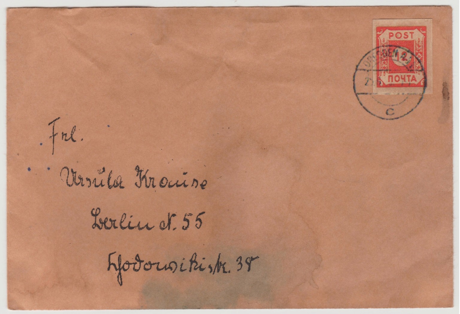 Unter anderem fand ich bei einem Verkäufer der sich mit Marken nicht auskennt,einen Briefumschlag (für 1 Euro) , mit einer Marke die ich zuerst für eine russische Briefmarke hielt !