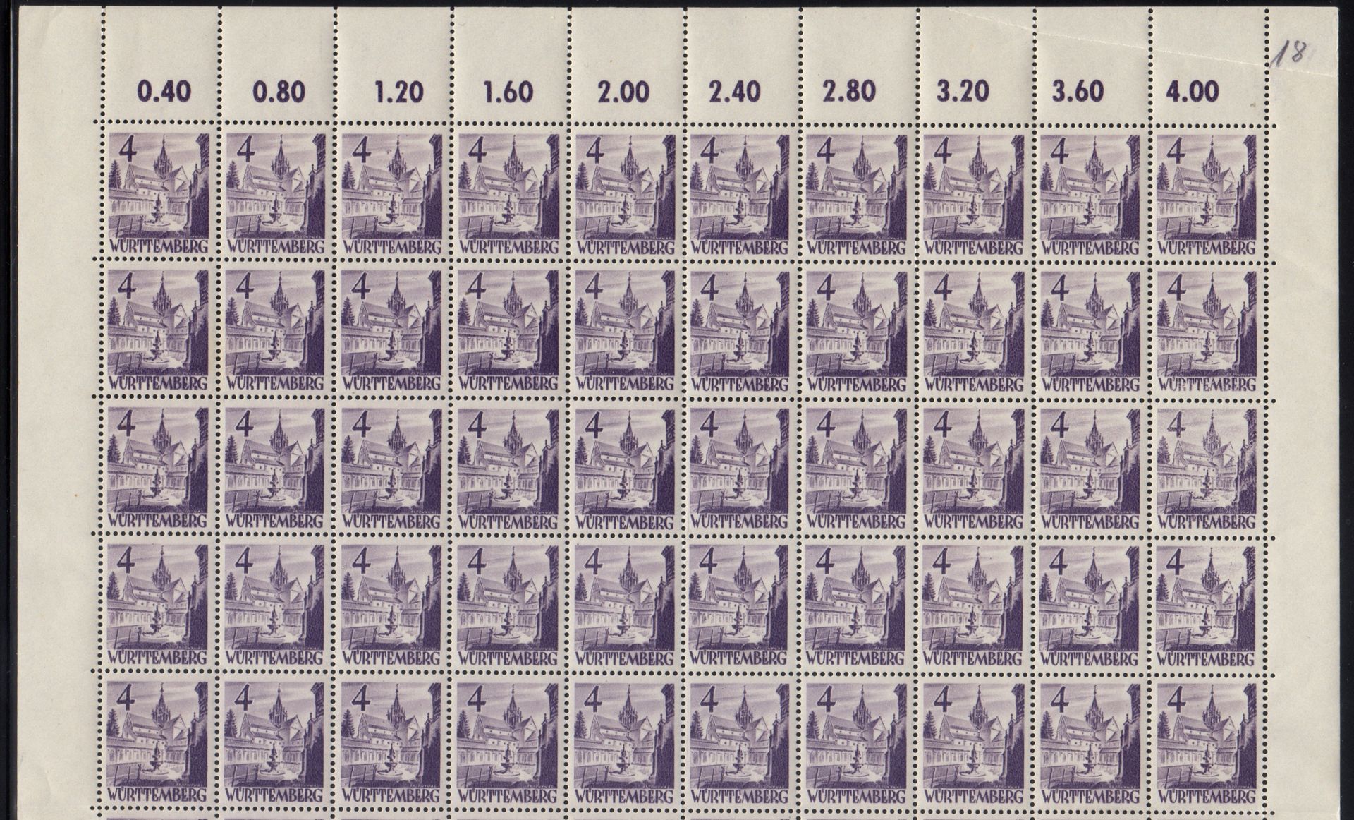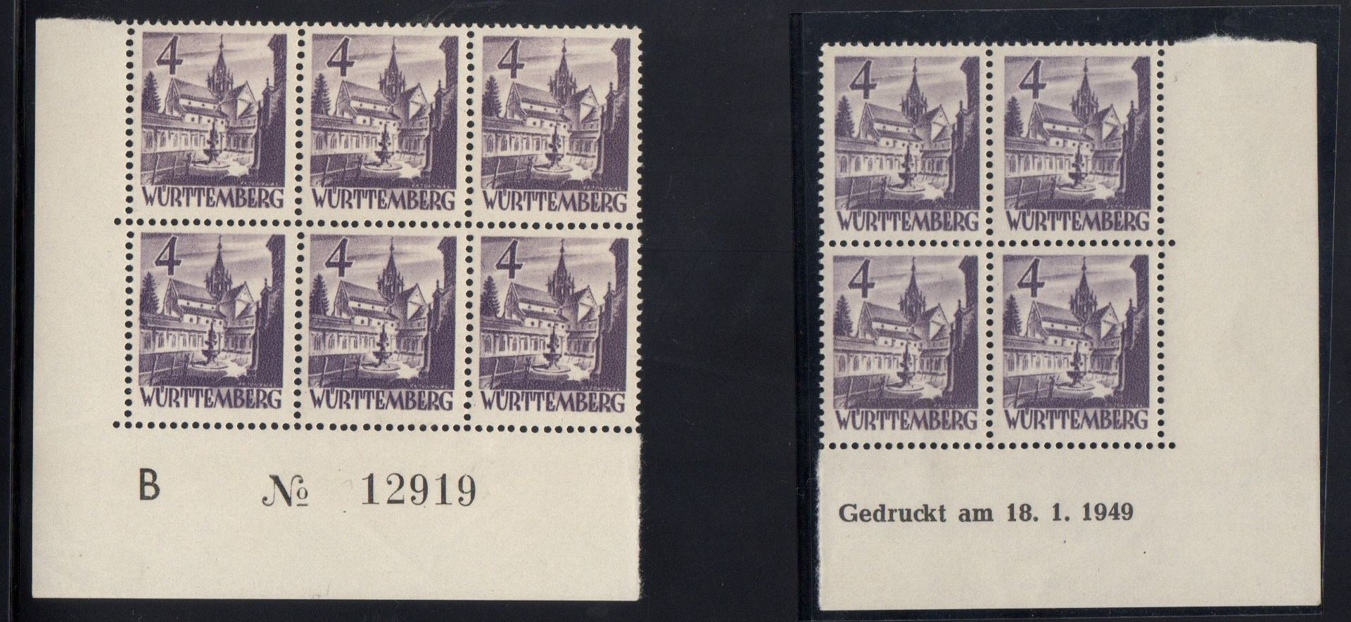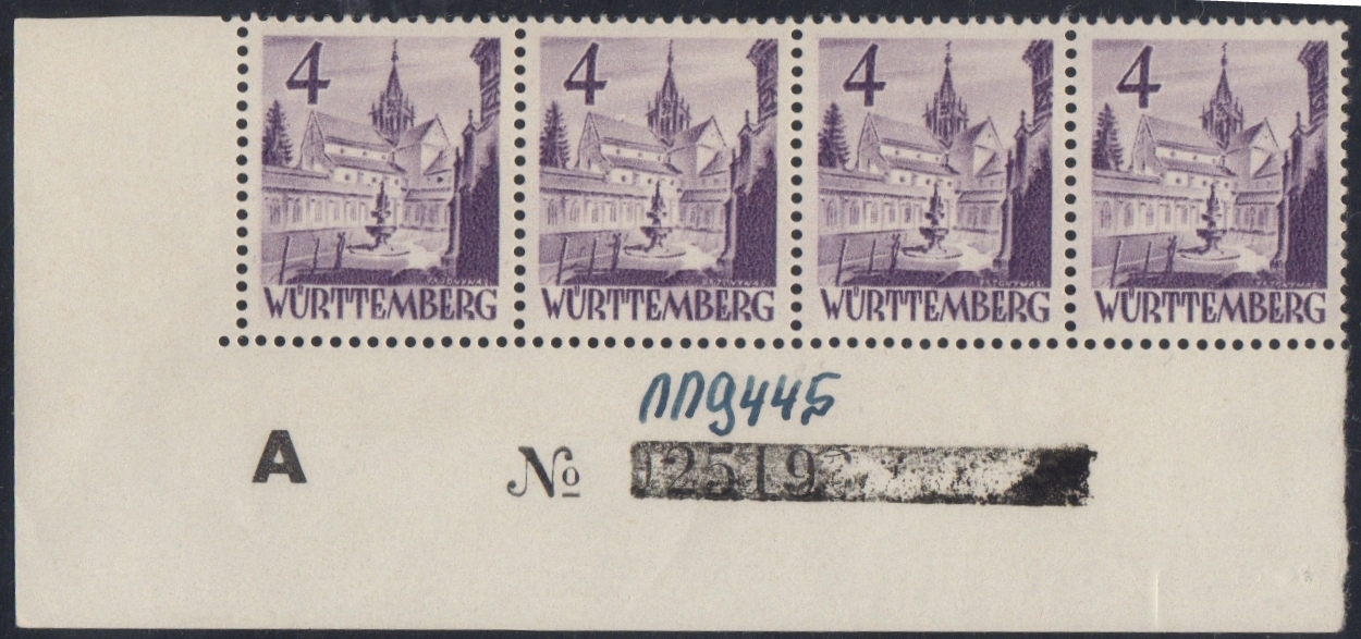 Mi. Nr. 28 kleine Zusammenstellung Bogennummern und Druckdatum vom 15.10.1948