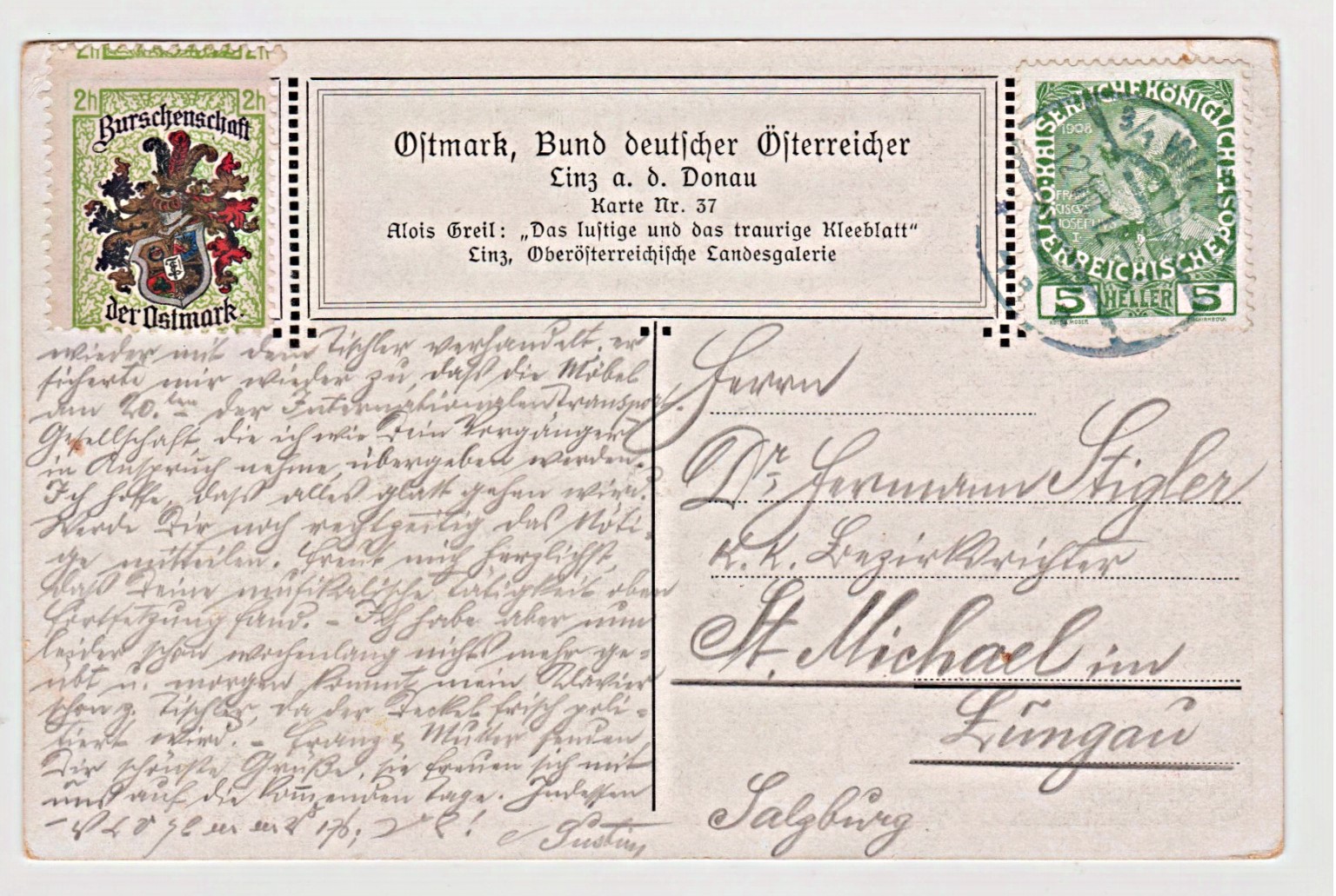 Burschenschaft der Ostmark - das war ein Zusammenschluss innerhalb der Monarchie damals und etwas Ähnliches wurde nach dem Zweiten Weltkrieg als "Deutsche Burschenschaft in Österreich" wieder ins Leben gerufen. Da gibt's übrigens In Salzburg mitten in der Altstadt eine davon, die "Germania" heißt, deren Mitglieder sich gegenseitig mit Säbeln eine über die Rübe hauen und wenn sie genug Alkohol intus haben, auch schon mal "Es zittern die morschen Knochen" zum "Besten" geben. <X