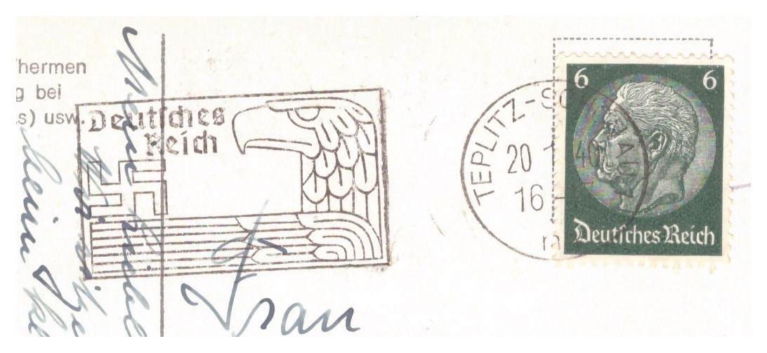 Außerdem suche ich speziell Belege zum Thema: Postfreistempel Adlerkopf/Hakenkreuz als Entwertungsstempel schwarz ohne Wertangabe - auch aptiert nach 1945 (s. Beispiel)