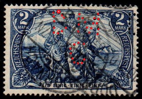 Immerhinhabe ich eine Marke mit Perfin "DM /C" aus Dornach, ich hoffe. tomm2015 leifert hier wieder mal die Lösung. Da es im jahr 1900 nicht die Gemeinde Dornach nahe München sein kann, vermute ich, dass es sich um Dornach im Elsass handelt.