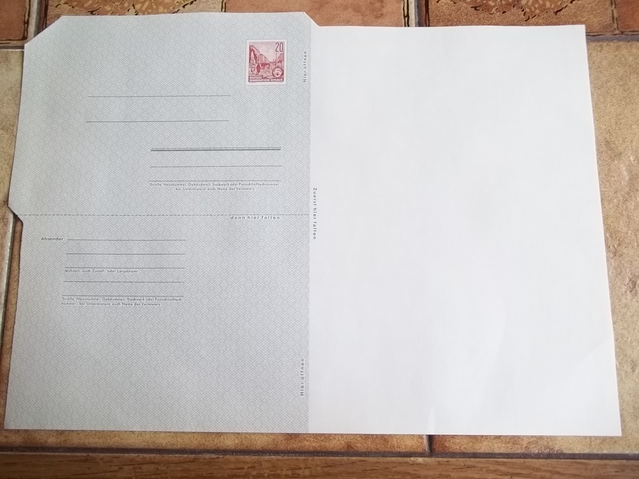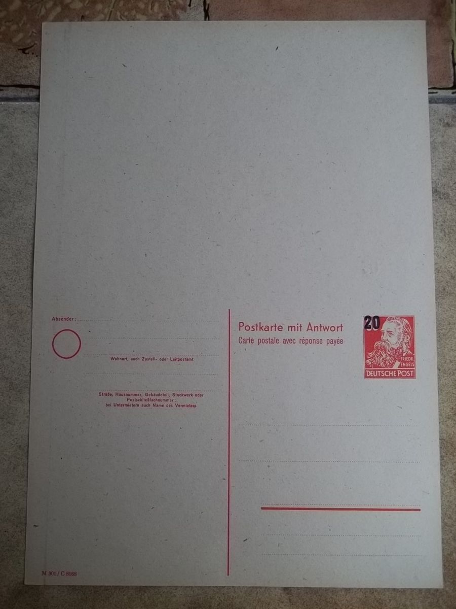 @dijatel, es ist zuerst ein Faltbrief. Den gab es auch mit dickem Papier 12 Euro für ungebraucht und 35 Euro für echt gelaufen. Habe bei mir so etwas "herumliegen". Dann war das Ganze ein Flop. Sprich es wurde nicht genutzt. Die verbliebenen wurden mit Zudrucken versehen. Also alles mit Luftpostvermerken sind "privat" erzeugte Sachen. Habe ich auch. Und sehr interessant, der Wertstempel (Stalinallee) von F 1 konnte als "geschnittene" Marke im Innendienst aufgebraucht werden (Paketkarten). Denn manchmal denkt man: Wieso gibt es die Mi.-Nr. 455 jetzt ungezähnt? Aber es ist eben der Ausschnitt aus dem Faltbrief.
