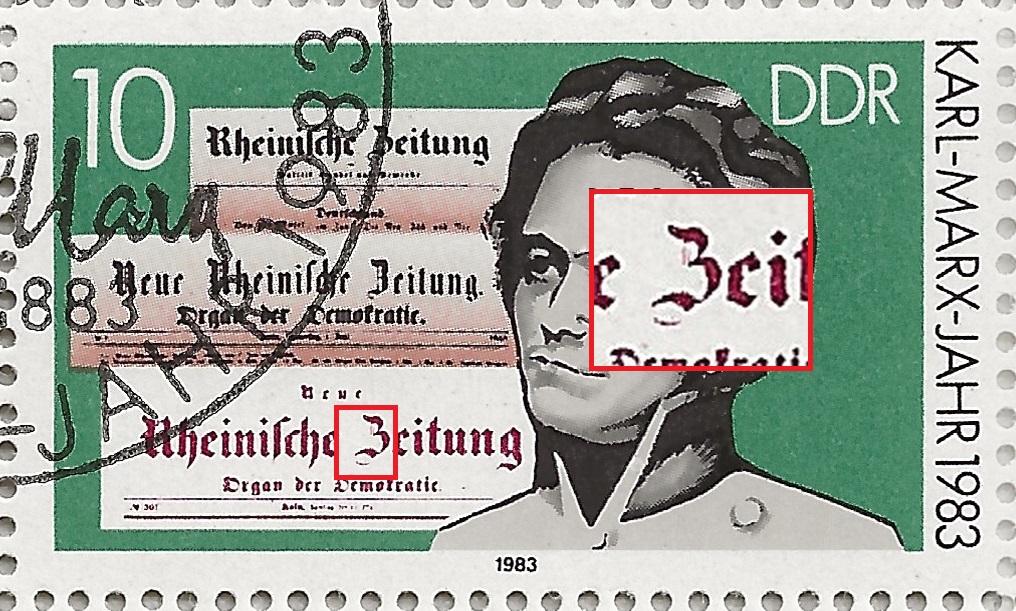 Als nächstes ebenso eine 2783 ''senkrechter Strich ''Z'' von ''ZEITUNG'' gebrochen.