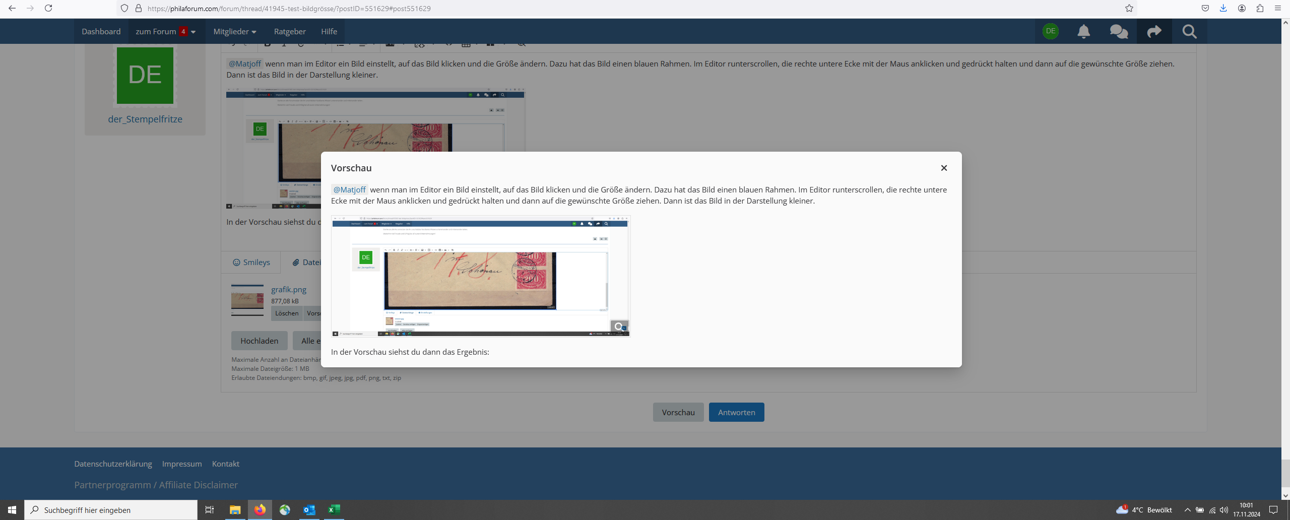 Matjoff wenn man im Editor ein Bild einstellt, auf das Bild klicken und die Größe ändern. Dazu hat das Bild einen blauen Rahmen. Im Editor runterscrollen, die rechte untere Ecke mit der Maus anklicken und gedrückt halten und dann auf die gewünschte Größe ziehen. Dann ist das Bild in der Darstellung kleiner.