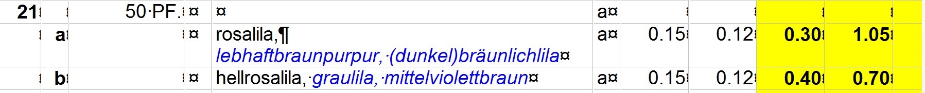 Ich habe heraus geschnitten, was ich bereits über die FDR009 gesammelt habe: Alle festgestellten Farbtöne sind in blauer Schrift angegeben.