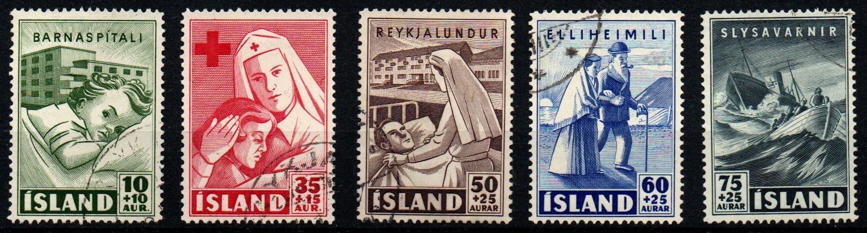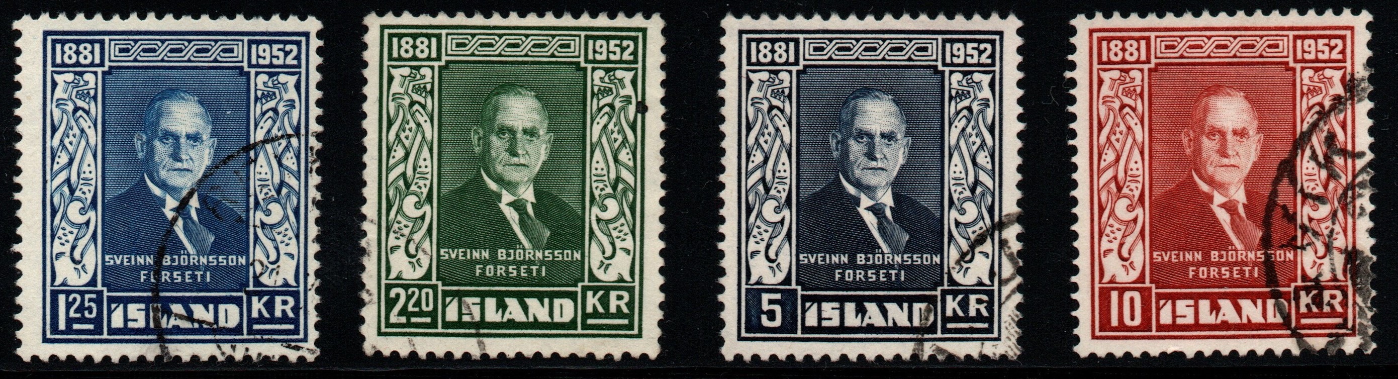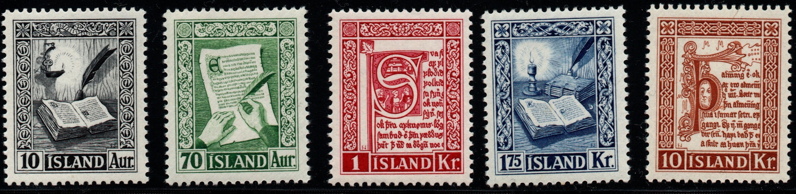 Die Marken wurden bei De la Rue in England im Stichtiefdruckverfahren produziert. Der Markenrahmen wurde von Árni Sveinsbjörnsson entworfen, das Portrait stammt von einer Photographie. Leider habe ich nicht herausgefunden wer der Photograph war. Die Marken wurden in 50er Bögen gedruckt. Es gab folgende Wertstufen: 10a, 25a, 50a, 1kr, 5 kr und 10kr.