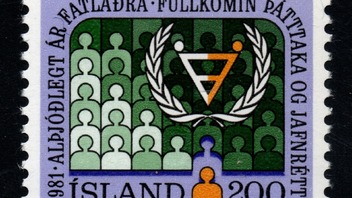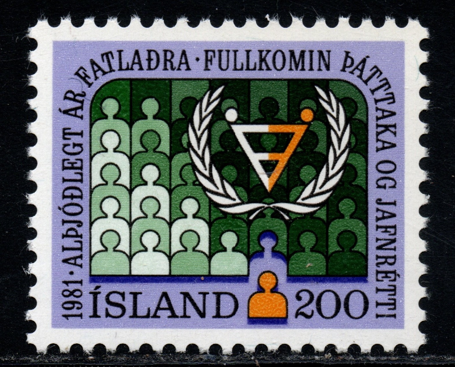 anlässlich des Internationalen Jahres der Behinderten brachte die isländische Post am 29. September 1981 eine Briefmarke heraus. Der Entwurf zu dieser Marke stammt wie so oft von Thröstur Magnússon. Produziert wurden die Marken im Rastertiefdruck bei der Courvoisier SA in der Schweiz.
