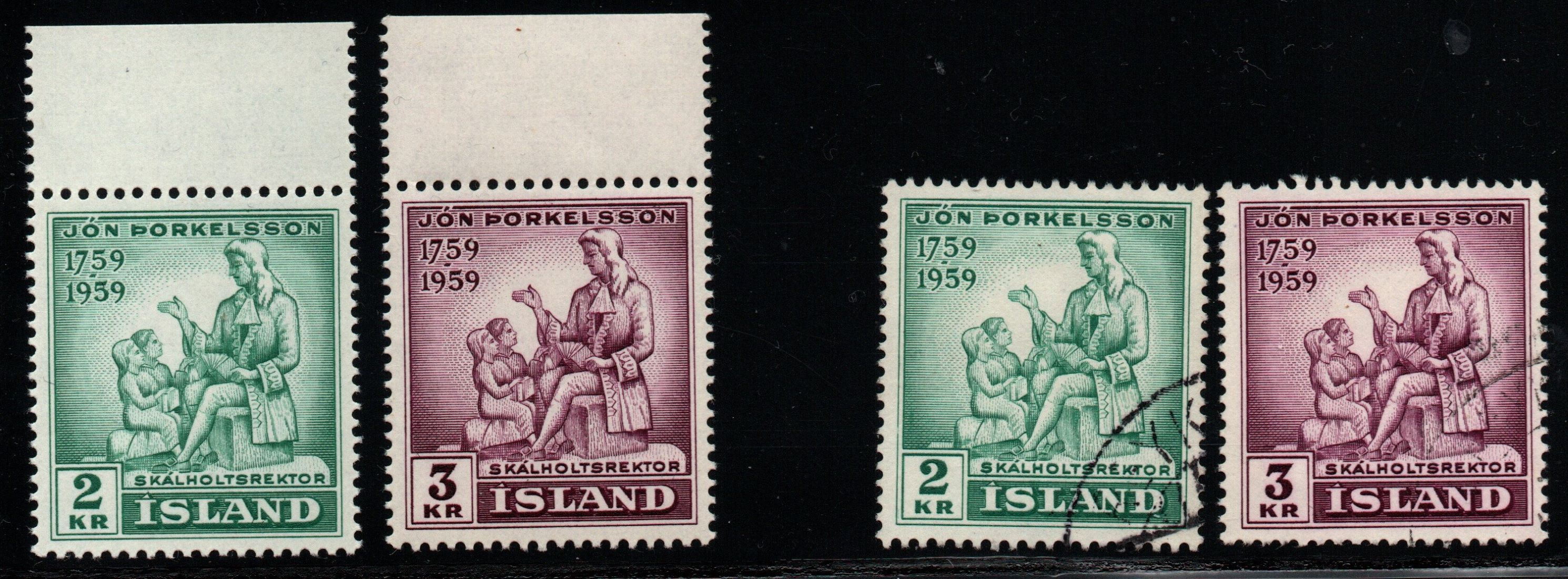 am 23. Januar 1956 erschien eine drei Werte umfassende Zuschlag-Markenausgabe zum 900. Jahrestag der Errichtung der Diözese in Skálholt. Der erste isländische Bischof ìsleifur Gissurarson gründete diese Diözese im Jahr 1056 und stiftete das Vermögen seiner Familie. Der Erlös aus dem Zuschlag kam dem Wiederaufbau des Bischofssitzes zu Gute: https://de.wikipedia.org/wiki/Sk%C3%A1lholt
