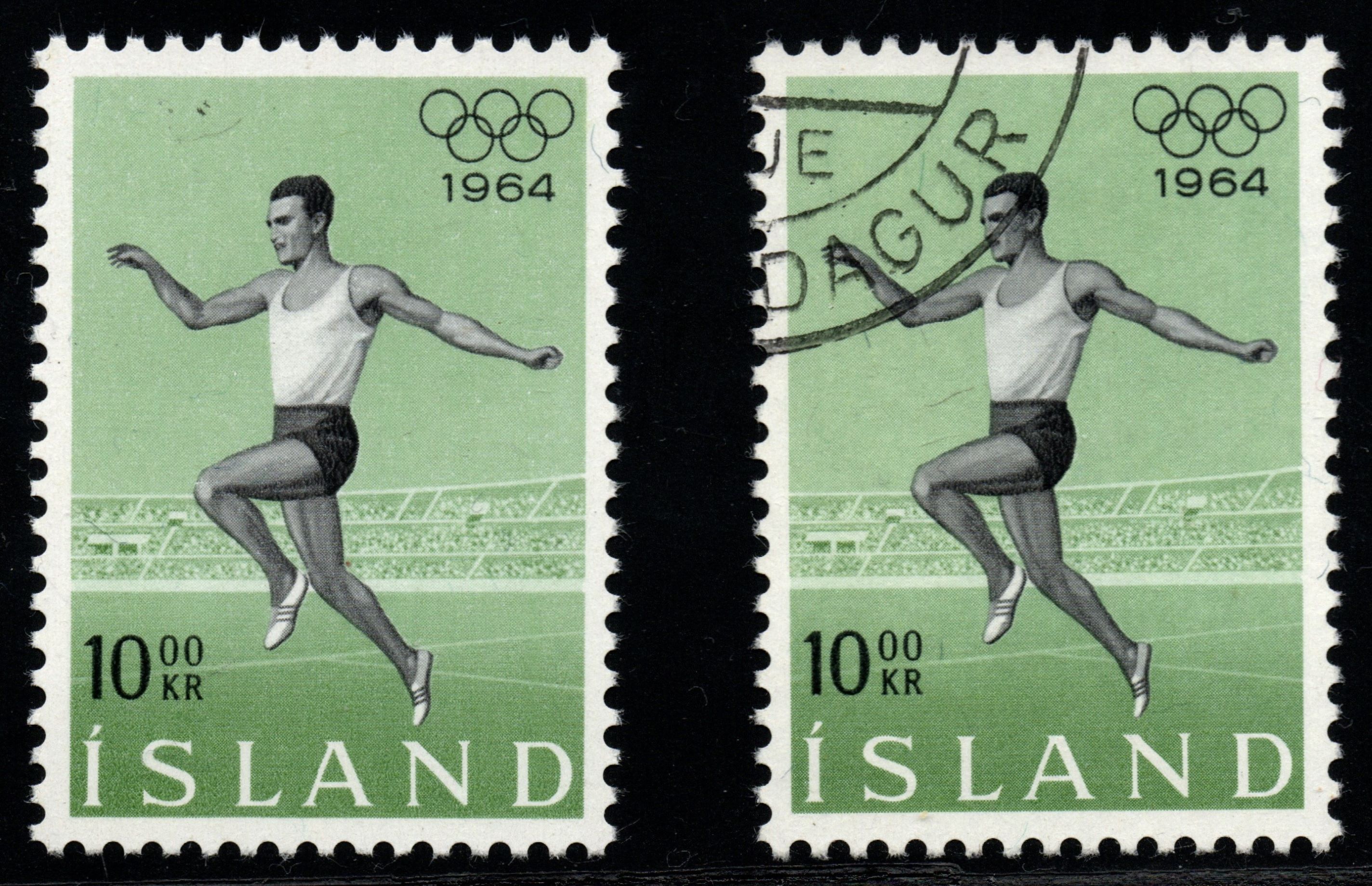 Auch hier katalogisiert der DAKA-Island wieder einen Mückenschiss. Ein kleiner Fleck im Himmel über dem Hügel am rechten Markenrand. Diese Marke kann ich postfrisch und gestempelt zeigen.